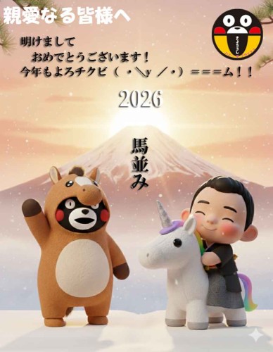 AI加工アプリやPhotoshopを利用して、「2026年 年賀状」を作成しました(*^^)v